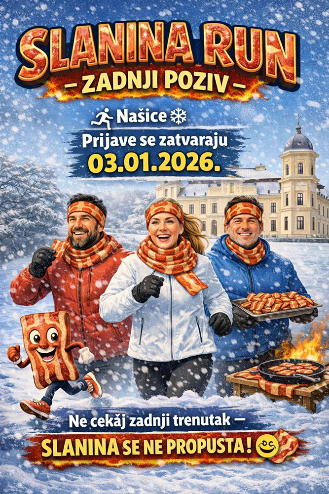 Našice će u nedjelju, 11. siječnja 2026. godine, po prvi puta biti domaćin jedinstvene rekreativne utrke Slanina Run, događaja koji na poseban način spaja sport, humor i zajedništvo. Utrka će se održati na području Urbarije u Našicama, a okuplja rekreativne trkače, zaljubljenike u trčanje i sve one koji žele započeti godinu aktivno, uz dobru atmosferu i prepoznatljiv „slanina“ štih po kojem je utrka dobila ime.